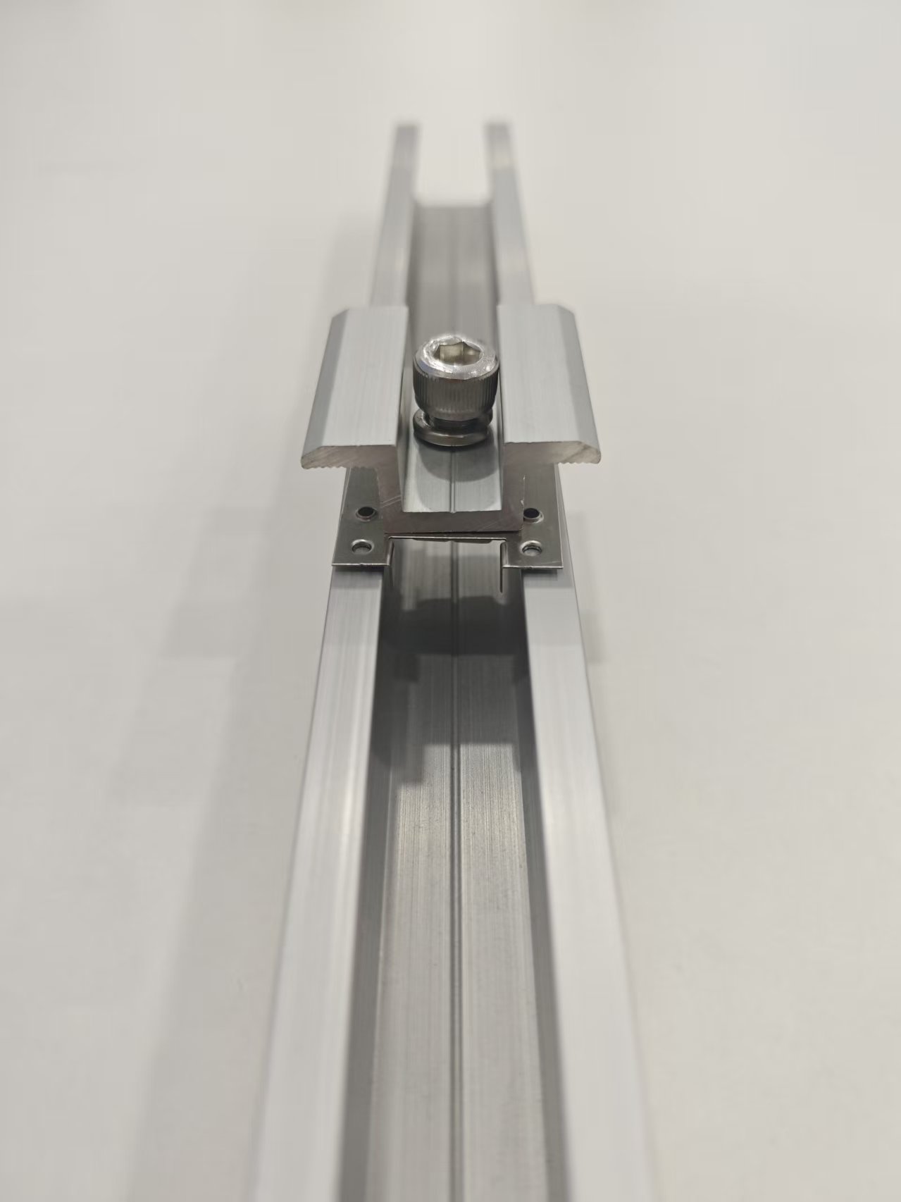 ĮrengimasH tipo saulės įžeminimo poveržlėyra labai paprasta ir lengva pradėti. Pirmiausia išimkite visą vidurinio spaustuko komplektą ir įsukite varžtą į poveržlę. Antra, įkiškite spaustuką į bėgelį ir įsitikinkite, kad poveržlė yra savo vietoje. Galiausiai priveržkite varžtą ir užbaikite montavimą.